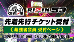 *こちらは超強者会員限定ページとなります* RIZIN.53の観戦チケットをRIZIN FFオフィシャルファンクラブサイト『強者ノ巣』会員様向けに、2026年3月30日(月)12:00から先着先行受付をスタート! お席位置につきまして、超強者会員様はより快適にご観戦いただける良席を確保いただけます。強者会員様はお申込み多数の場合、お席の優先確保のみで、良席の保障はいたしかねます。 RIZIN.53 <大会概要/チケット情報> 【名称】RIZIN.53【日時】2026年5月10日(日)12:00開場予定 14:00開始予定※開場・開始時間は予定です。決定次第RIZIN FFオフィシャルサイトにてご案内します。【会場】GLION ARENA KOBE【主催】RIZIN FIGHTING FEDERATION【制作協力】株式会社エムアップホールディングス/ディライトワークス株式会社 【チケット料金】 券種 料金 特典 座席位置 VVIP席 275,000円 特典付 1列目 VIP席 110,000円 特典付 SRS席 33,000円 - S席 22,000円 - A席 11,000円 - スイートラウンジ席 22,000円 ※今大会はスイートラウンジ席の飲食の提供はございません。 ※全席指定・消費税込※演出や販売状況、イベントの都合により、席割りが変更になることがあります。予めご了承の上、チケットをご購入ください。【チケット一般発売日】2026年4月12日(日) ▼その他、最新の大会情報はRIZIN FFオフィシャルサイトよりご確認ください。 ≫RIZIN.53 大会情報/チケット ※VVIP席・スイートラウンジ席は、イープラスのみで販売します。※今大会はスイートラウンジ席の飲食の提供はございません。※プレイガイドでは電子チケットのみの販売になります。※1歳よりチケットが必要です。※車いすで観戦をご希望の方はS席をご購入ください。指定スペースでの観戦になります。※主催者の都合による大会の中止以外でのお客様の都合によるチケットの変更・払い戻しは、如何なる場合も受付ておりません。出場選手・対戦カードは発表した後に怪我等の理由により変更となる場合がございます。また今後の政府や各自治体等の発表や要請などにより、大会の実施・運営方法や座席に関しまして変更になる場合もあります。予めご了承ください。※主催者の許可なく、営利目的でかつ業として行われるチケットの転売は固くお断りします。転売されたチケットでの入場はお断りすることがあります。 <高額席種をお申込み希望のお客様へ>クレジットカードのご利用限度額不足等により、お申込み時に決済が実施できない場合がございます。高額席種を希望される場合は、ご利用限度額を事前にご確認いただき、クレジットカード会社へ高額決済がある旨のご連絡もご検討ください。※限度額の引き上げに数日かかる場合もございます。ご注意ください。 RIZIN.53<ファンクラブ先着先行受付> 【受付期間】2026年3月30日(月)12:00~2026年4月1日(水)18:00【受付対象】RIZIN FF オフィシャルファンクラブサイト「強者ノ巣」会員【受付方法】先着先行(先着順で受付けます。お席位置は抽選で決定します。)【受付制限数】おひとり様お申込みは1回のみ、VVIP席は2枚まで、その他の券種は4枚まで。※お支払い方法によって異なる場合があります。【入金期間】申込み日を含め3日後の21:00まで。 ※スイートラウンジ席は、RIZIN FFオフィシャルファンクラブサイト『強者ノ巣』会員の先着先行での受付はありません。※配席時において本先行受付のお席を優先的に確保しますが、その後の演出プランの変更や販売状況などによりお席位置の優劣が前後する場合があります。※イープラスの会員登録(無料・携帯電話番号登録と電話番号認証必須)が必要です。すでにイープラスの会員登録をお持ちの方は、受付開始前に登録状況の確認をお勧めします。※スマートフォンよりお申込みください。なおチケットの表示には「イープラスアプリ(無料)が必要です。イープラスアプリについて https://eplus.jp/sf/guide/eplusapp※チケット代金以外に所定のサービス料と各種手数料が発生します。詳細はお申込時にご確認ください。※各金融機関のペイジー対応ATMでのお支払いは現金の場合10万円まで、コンビニエンスストアでのお支払いは30万円までです。 この金額を超える申込みの方はクレジットカード決済をご利用ください。※毎月第1・第3木曜日AM2:00~AM8:00はメンテナンスのため申込み・支払い・受取り手続きができません。 ※詳しくは受付ページでご確認ください。 ■チケットダウンロード開始 2026年5月4日(月)~ 先着先行受付超強者会員 申込ページ ※スマートフォンよりお申込みください。 PCおよびタブレットからのお申込みはできません。 お問い合わせ先▼お申込み・イープラスについてイープラスカスタマーセンター050−3185−6449(受付時間10:00~18:00・土日祝含む) イープラスお客様サポートhttps://eplus.jp/qa/▼イベントについてRIZIN FF事務局https://jp.rizinff.com/contact▼ファンクラブについてRIZIN FF ファンクラブ事務局https://fc.rizinff.com/pages/contact